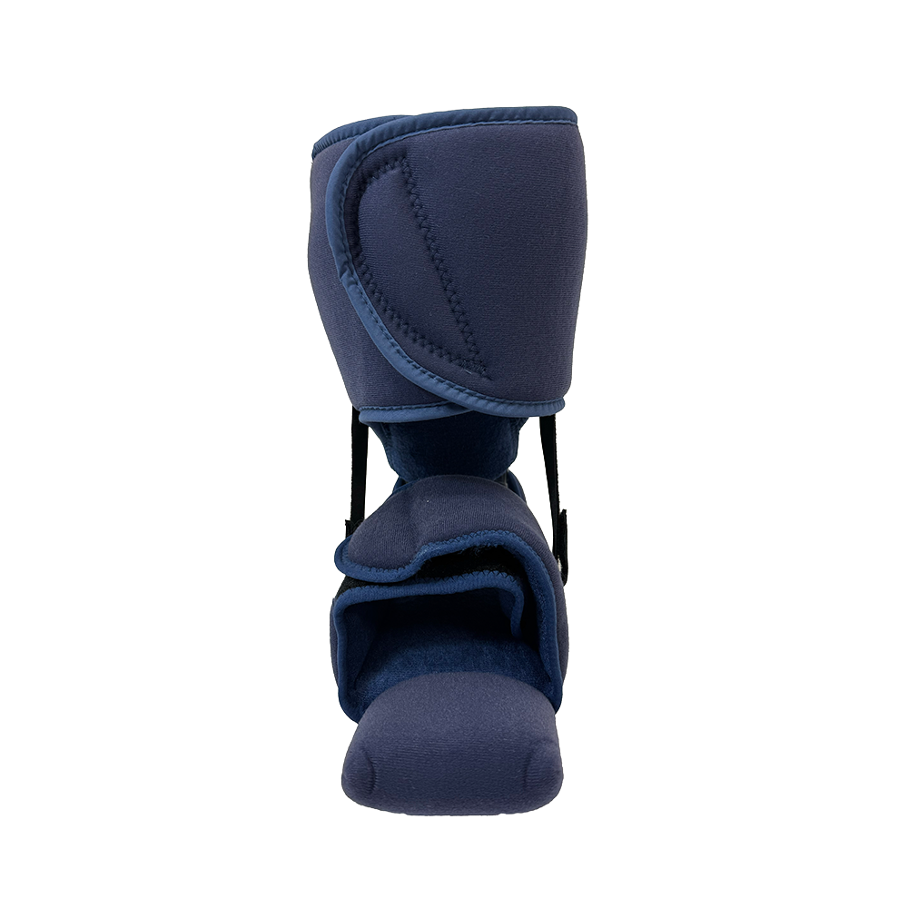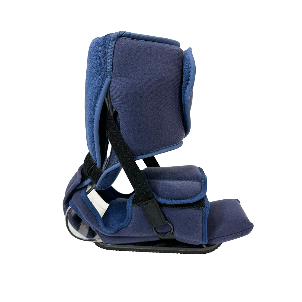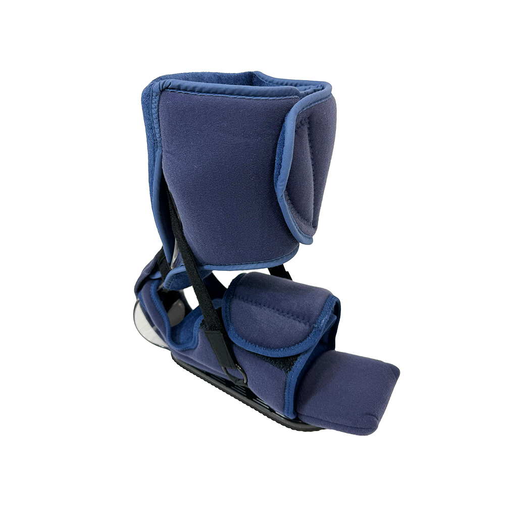 Kevytpolykarbonaatista valmistettu AFO, joka tarjoaa kantalepoan tukemaan painehaavojen hoitoa ja ehkäisyä, jalkaterän laskun hallintaa ja ei-fiksattuja plantaarifleksiosopimuksia. Läpinäkyvä polykarbonaattikehys mahdollistaa kantapään seurannan ilman ortoosin poistamista. Vuori siirtää kosteutta, luoden kuivemman ja puhtaamman ympäristön, vähentäen bakteerikasvuston riskiä ja parantaen potilaan sitoutumista. Pehmustettu anti-rotatiotanko auttaa jalan asennon säätelyssä ja estää lantion lateraalista/ mediaalista kiertoa. Kehyksen leveä muoto tarjoaa myös sivuttaissuojaa nilkalle, jos potilas kääntyy kyljelleen nukkuessaan. Säädettävä varvastuki ja irrotettava liukuesteellinen pohja sisältyvät.